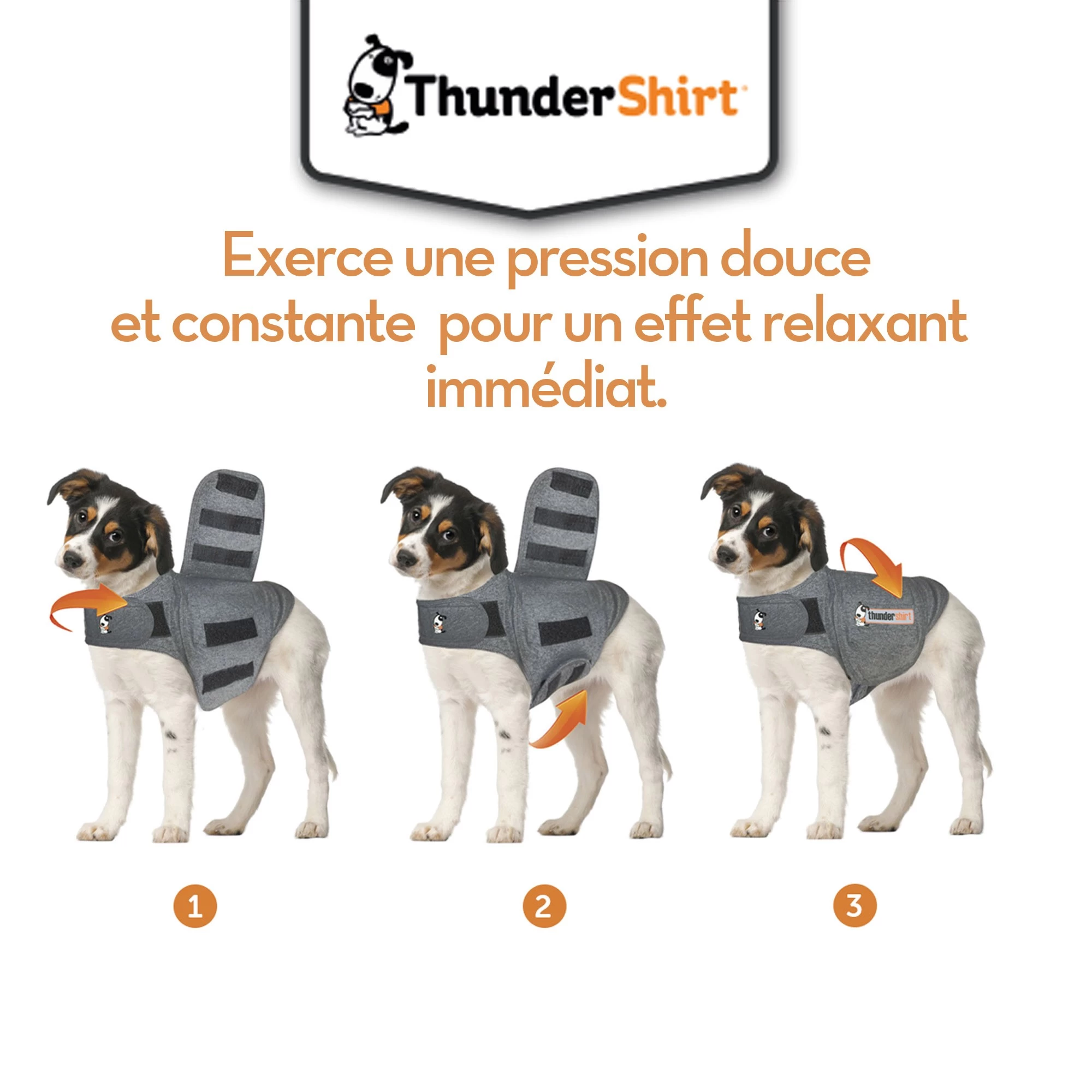 - ThunderShirt® aide les chiens à se sentir en sécurité en diminuant les manifestations de stress. Pour le reste, l’application de vos conseils par le propriétaire est primordiale.
