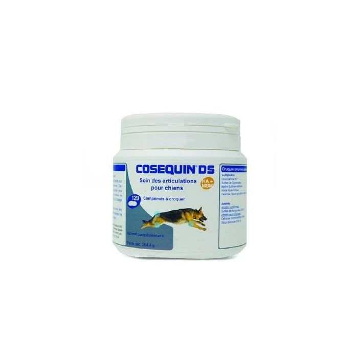 Chez les chiens, les articulations les plus souvent atteintes sont les hanches, les grassets, les épaules et les jarrets. Par sa composition originale, COSEQUIN DS apporte l’ensemble des nutriments essentiels au cartilage et contribue au maintien de son intégrité, indispensable à une bonne mobilité, en particulier chez le chien âgé ou suite à un traumatisme ou une intervention chirurgicale.