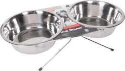 Flamingo Gamelle Pour La Nourriture Et L’eau Set + Support Arjun Inox 25cm 2500ml