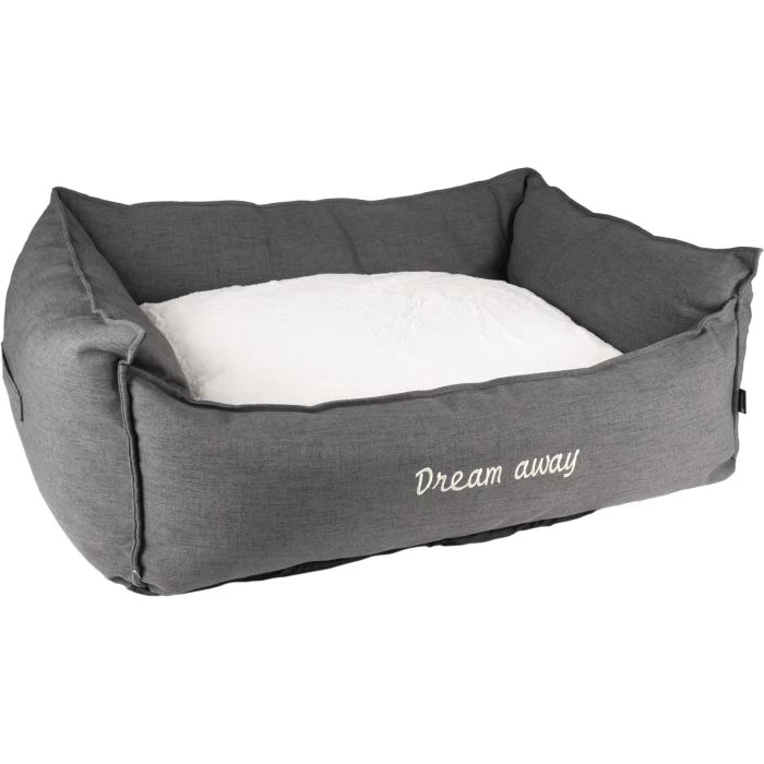 Cet élégant panier pour chien Dream Away est un atout pour votre maison. Le panier est fabriqué en polyester résistant et possède un antidérapant au fond qui empêche tout déplacement. Le coussin est amovible et sa housse peut être retirée par une fermeture éclair. Elle peut être lavée à 30 degrés. Vous pouvez aussi retourner le coussin pour changer ! Le panier a un niveau d’entrée bas, ce qui le rend également adapté aux chiens un peu plus âgés. Grâce à sa belle couleur neutre, le panier s’intègre à tous les intérieurs.