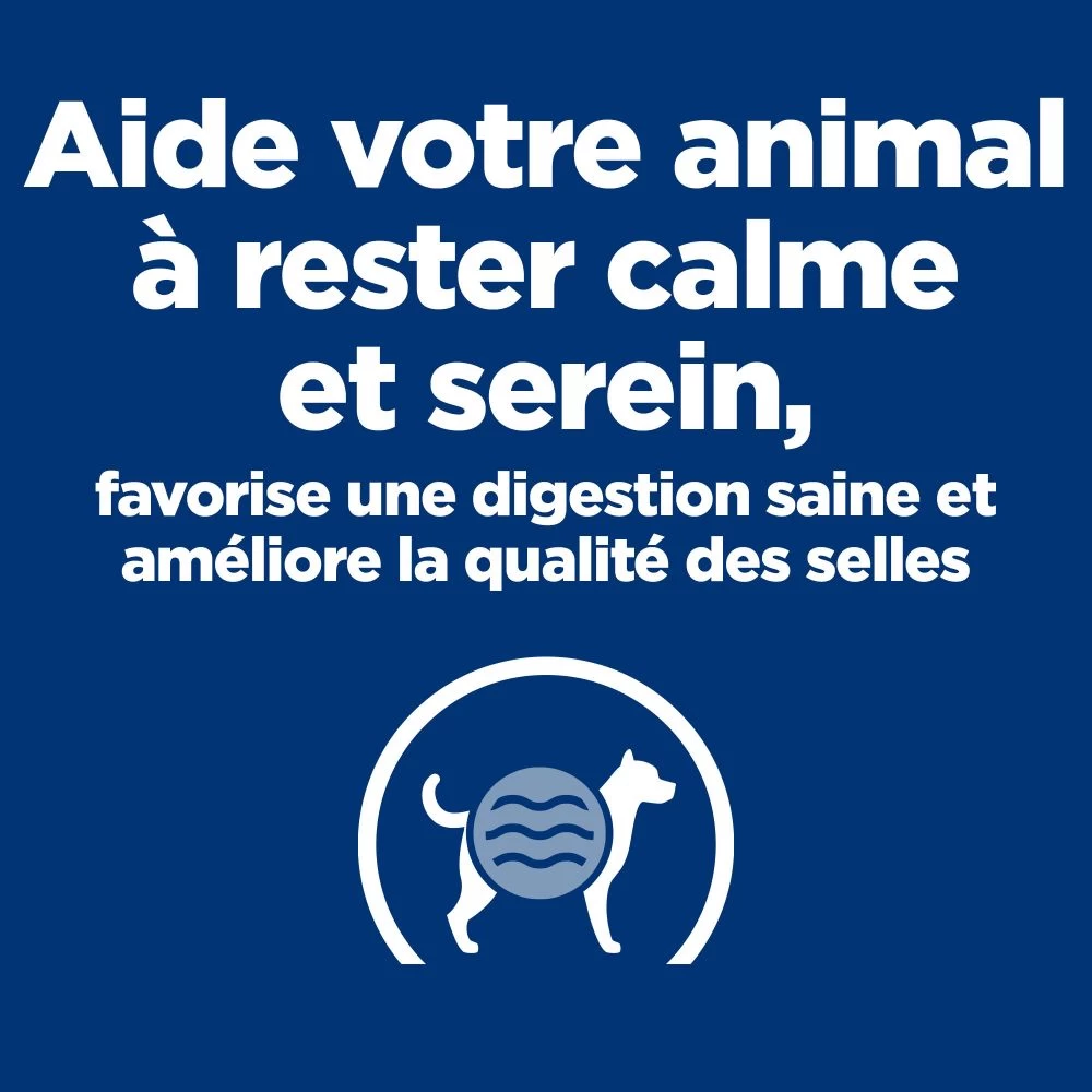 Hill’s Prescription Diet i/d Stress Mini est un aliment pour Chien au Poulet diététique, complet, hautement digestible en vue de la réduction du risque de malabsorption intestinale, de la compensation de la maldigestion, d’insuffisance pancréatique exocrine, des troubles tirant bénéfice d’une alimentation à teneur réduite en matières grasses et d’un soutien dans les situations de stress, ce qui entraînera une réduction du comportement associé.