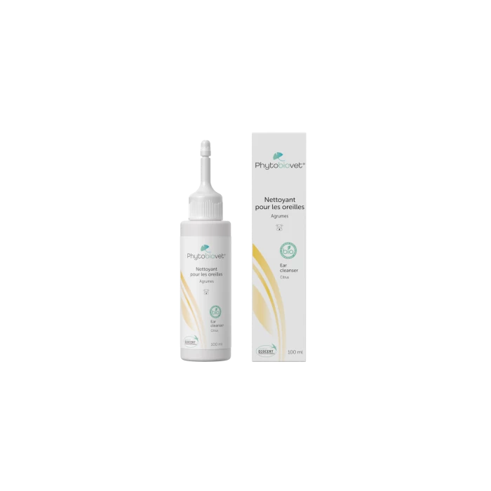Phytobiovet® nettoyant pour les oreilles aux extraits d’agrumes bio dissout le cérumen et permet un nettoyage en douceur des oreilles chez le chien, tout en nourrissant l’épiderme. En entretien régulier ou avant l’application d’un produit de traitement.