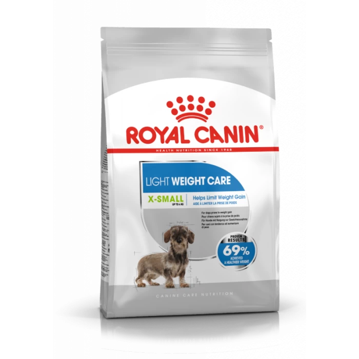 ROYAL CANIN® Light Weight Care X-Small est formulé pour les chiens ayant une prédisposition à la prise de poids afin d’aider le chien à atteindre et à maintenir un poids idéal. Une formule riche en protéines et faible en matières grasses aide à maintenir la masse musculaire et à réduire la prise de poids. Une formule complète et équilibrée avec une combinaison optimale de fibres solubles et insolubles aide votre chien à se sentir heureux. Les acides gras oméga 3 contribuent à la santé des articulations. Plus de 69 % des chiens légèrement en surpoids nourris avec la nourriture sèche ROYAL CANIN® Light Weight Care X-Small ont atteint un poids plus sain en 8 semaines. Convient aux chiens adultes de très petite race (jusqu’à 4 kg) ayant tendance à prendre du poids.