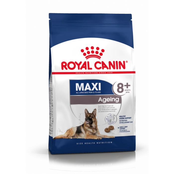 ROYAL CANIN® Maxi Ageing 8+ convient aux chiens adultes. pesant entre 26 et 44 kg et est spécialement élaboré pour répondre à tous les besoins nutritionnels de votre grand chien.
